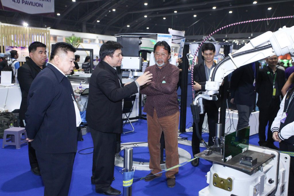 นายภานุวัฒน์ ตริยางกูรศรี (กลาง) รองอธิบดีกรมส่งเสริมอุตสาหกรรม กระทรวงอุตสาหกรรม เข้าเยี่ยมชมผลงาน Innovation Showcase ภายใต้แนวคิด Smart farming Smart Factory และ Smart life ซึ่งได้รับการสนับสนุนโดยสำนักพัฒนาอุตสาหกรรมสนับสนุน (สพส.) ทั้งนี้ผลงานนวัตกรรมภายในงานเป็นไปตามนโยบาย S – Curve และ New S – Curve เพื่อร่วมเป็นส่วนหนึ่งในการสร้างอุตสาหกรรมไทยให้ก้าวไกลด้วยนวัตกรรมและเทคโนโลยี สู่ประเทศอุตสาหกรรม 4.0 ในงาน Thailand Industry Expo 2017 ณ อาคารชาเลนเจอร์ 1-3 ศูนย์แสดงสินค้าอิมแพ็ค อารีนา เมืองทองธานี