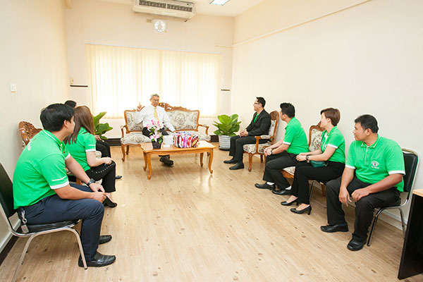 นายวิวัฒน์ ศัลยกำธร “อาจารย์ยักษ์” รัฐมนตรีช่วยว่าการกระทรวงเกษตรและสหกรณ์ ประธานสถาบันเศรษฐกิจพอเพียง และประธานมูลนิธิกสิกรรมธรรมชาติ ให้การต้อนรับนายมนตรี บุญจรัส (ที่ 4 จากขวา) ประธานบริหารชมรมเกษตรปลอดสารพิษและคณะ ในโอกาสเข้าอวยพรสวัสดีปีใหม่ โดยได้ร่วมพูดคุยแลกเปลี่ยนแนวทางการทำเกษตรปลอดสารพิษ ตามหลักปรัชญาเศรษฐกิจพอเพียง พร้อมรับมอบของที่ระลึก และหนังสือผู้นำขบวน ตามรอยธรรมพระราชา ณ กระทรวงเกษตรและสหกรณ์ ถนนราชดำเนินนอก กรุงเทพฯ