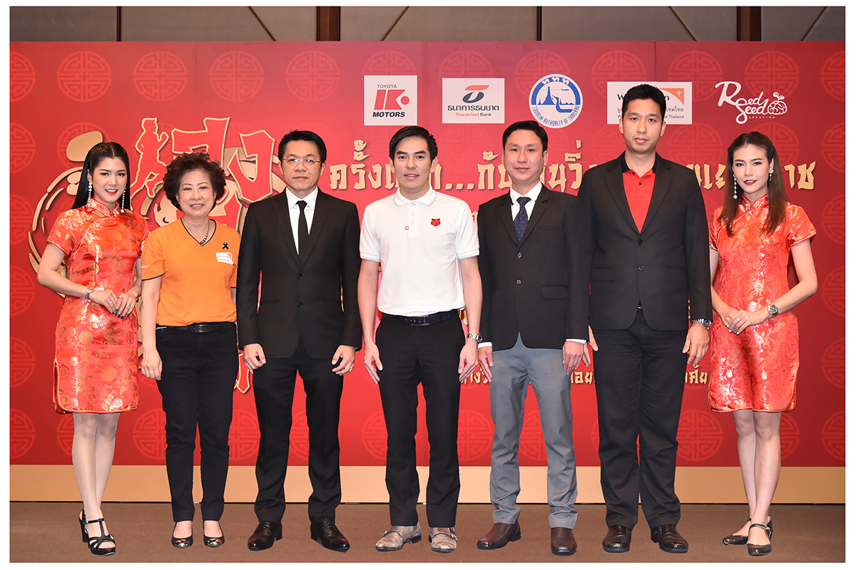 นายชัยพร สมภพรุ่งโรจน์ (กลาง) รองกรรมการผู้จัดการบริษัท โตโยต้า เค.มอเตอร์ส ผู้จำหน่ายโตโยต้า จำกัด พร้อมด้วยนายประพันธ์ อนุพงษ์องอาจ (ที่ 3 จากซ้าย) รองกรรมการผู้จัดการ สายงานธุรกิจสินเชื่อรถยนต์ บริษัท ธนาคารธนชาต จำกัด (มหาชน) ในฐานะผู้สนับสนุนหลัก เข้าร่วมงานแถลงข่าวเปิดตัวกิจกรรมเดิน-วิ่งมาราธอน “ เฮง เฮง 2017 Chinese New Year Run ” ในวันอาทิตย์ที่ 12 กุมภาพันธ์นี้ ถือเป็นครั้งแรกบนถนนเยาวราช กับบรรยากาศเฉลิมฉลองปีใหม่ตรุษจีนตลอดเส้นทาง รายได้หลังหักค่าใช้จ่ายทั้งหมดมอบให้แก่มูลนิธิศุภนิมิตแห่งประเทศไทย โดยมีนายแทนไท สกุลวิจิตรสินธุ ผู้จัดการทั่วไป บริษัท เรด ซี๊ด ครีเอชั่น จำกัด (ที่ 3 จากขวา) ให้การต้อนรับ ณ ห้อง Meeting Room 3 ศูนย์การประชุมแห่งชาติสิริกิติ์